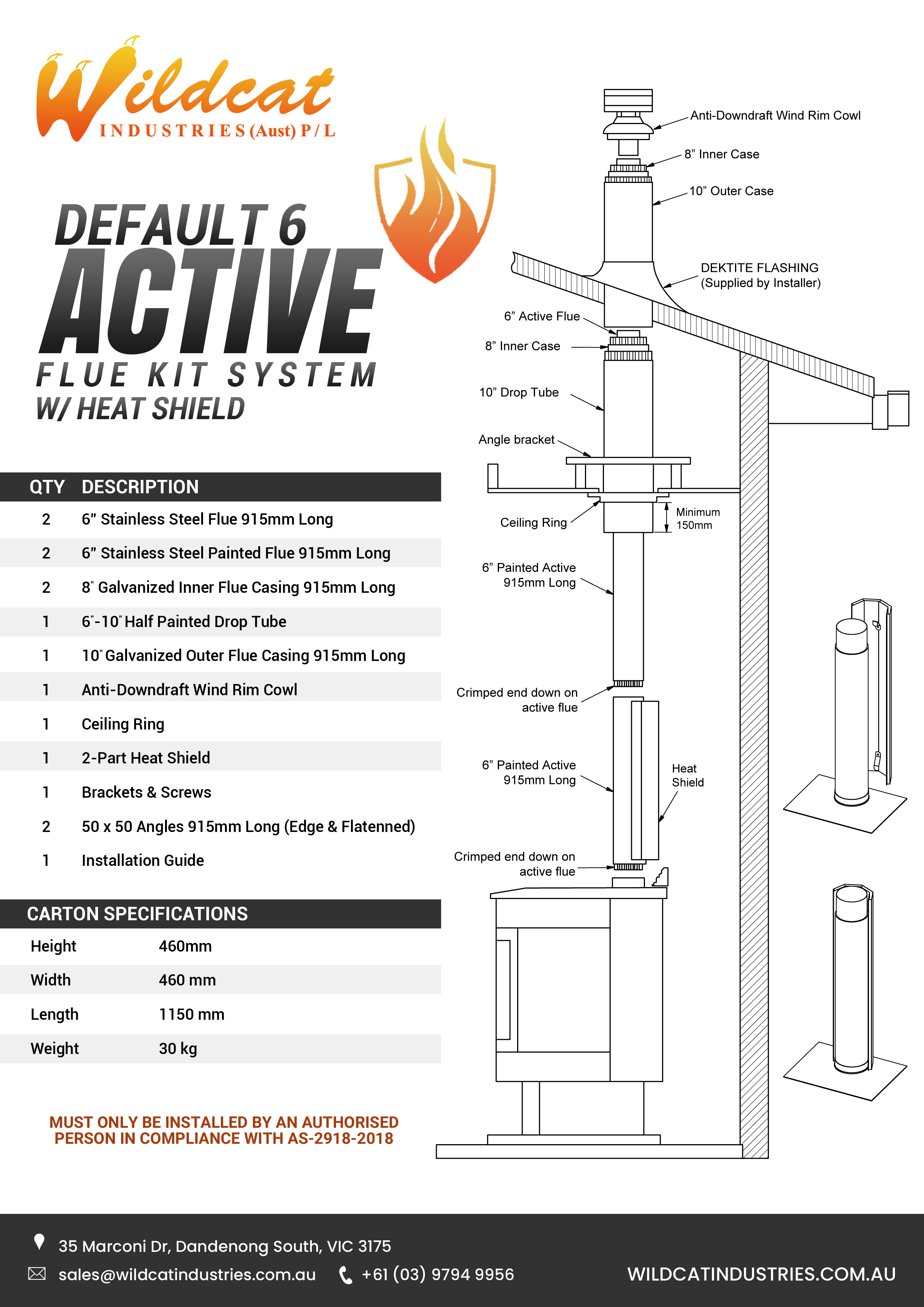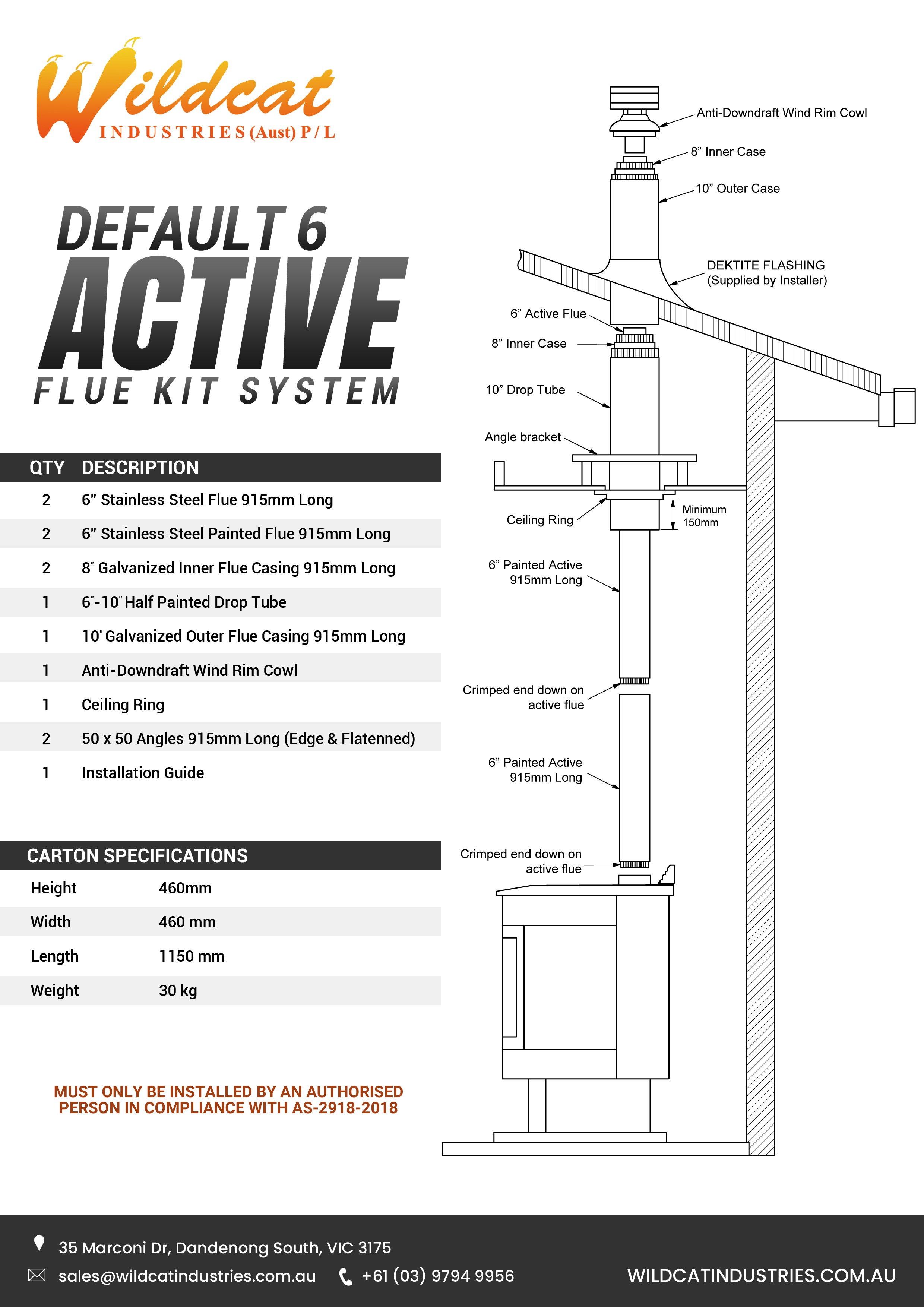 WARNING: To ensure safety, this flue kit must be installed as outlined in these instructions and the appropriate requirements of the relevant building code or codes. Wood fire and flue clearances from the combustible walls must be in accordance with the specifications. These installation instructions are for tested appliances only.